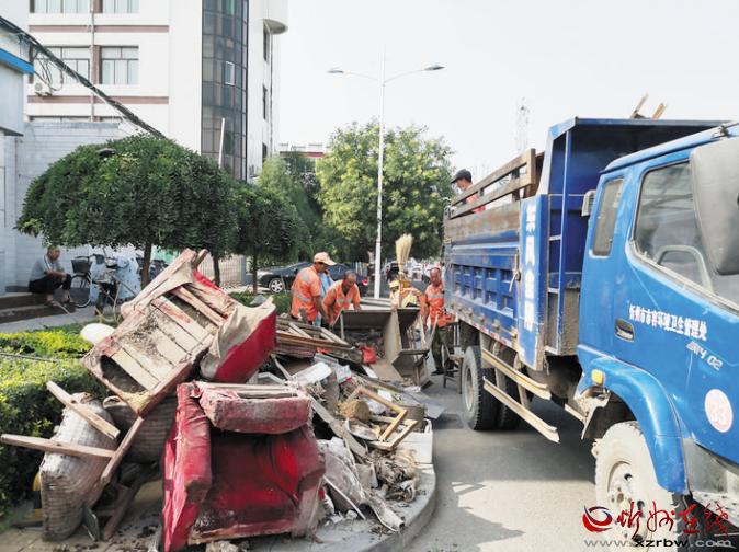 8月2日,忻州城區(qū)環(huán)衛(wèi)工人正在清運(yùn)垃圾。今年是第六屆創(chuàng)建全國(guó)文明城市評(píng)選決勝之年。在市創(chuàng)建全國(guó)文明城市總指揮部的統(tǒng)一協(xié)調(diào)指揮下,結(jié)合當(dāng)前正在開展的城區(qū)“兩下兩進(jìn)兩拆雙修一提升”專項(xiàng)整治行動(dòng),近日,各單位和居民小區(qū)清潔環(huán)境,助力創(chuàng)建全國(guó)文明城市。市市容環(huán)境衛(wèi)生管理處組織環(huán)衛(wèi)工人和車輛對(duì)指定堆放的垃圾進(jìn)行了集中清運(yùn)。 張劍雄 攝