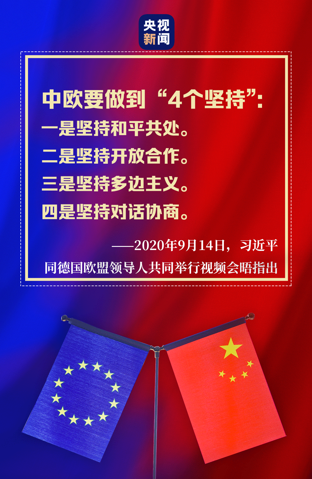 “后疫情時(shí)代”中歐關(guān)系如何發(fā)展,習(xí)近平主席的“4個(gè)堅(jiān)持”向世界表明了中國立場(chǎng)、中國態(tài)度。