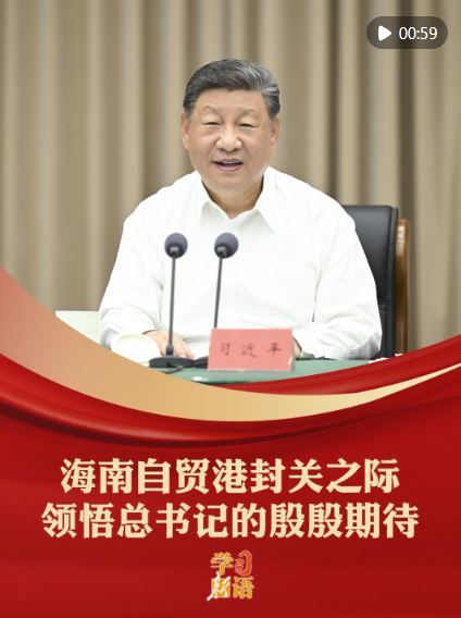 12月18日,海南自由貿(mào)易港正式啟動全島封關。建設海南自由貿(mào)易港,是習近平總書記親自謀劃、親自部署、親自推動的改革開放重大舉措。封關之際,讓我們領悟習近平總書記的殷殷期待,為把海南自由貿(mào)易港打造成為引領我國新時代對外開放的重要門戶加油。