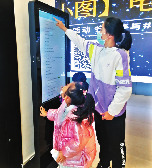 圖①為學生通過智能終端自助閱讀屏選擇書籍閱讀。圖②為一位市民正在聚精會神地閱讀充電。