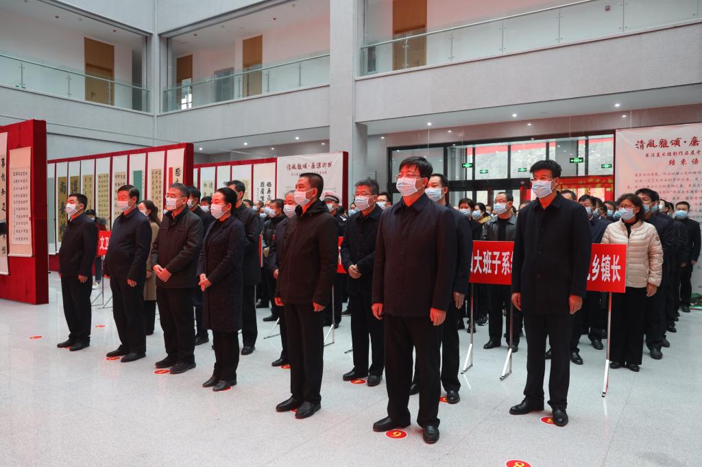 11月17日上午,忻州市紀(jì)委監(jiān)委主辦的“清風(fēng)雅頌·廉潔忻州”書法美術(shù)攝影作品展岢嵐縣專場在岢嵐縣總工會新樓一樓大廳舉行開展儀式??h四大班子領(lǐng)導(dǎo)和其他縣處級領(lǐng)導(dǎo)、各鄉(xiāng)鎮(zhèn)、縣直各單位主要負(fù)責(zé)同志共計(jì)150余人參加了開展儀式。
