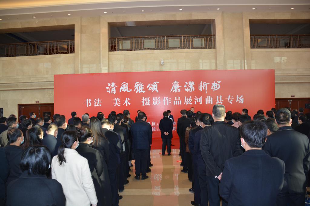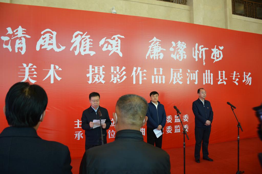 翰墨丹青揚正氣,清風廉韻沁民心。11月10日,由忻州市紀委監(jiān)委主辦,河曲縣紀委監(jiān)委承辦的“清風雅頌·廉潔忻州”書畫美術攝影展河曲縣專場,在臨隩公園美術館開展。市政協(xié)副主席、縣委書記邊東圣出席儀式并作重要講話,縣委副書記、縣長任鴻賓宣布“清風雅頌·廉潔忻州”書法美術攝影展開展,縣委常委、縣紀委書記、縣監(jiān)委主任張永明主持開展儀式??h四大班子領導和其他縣處級領導,全縣各鄉(xiāng)鎮(zhèn)、居民辦、黨群、政府、發(fā)改、農口、政法、宣傳文衛(wèi)各口黨員干部及全體紀檢監(jiān)察干部共計180余人參加了開展儀式。