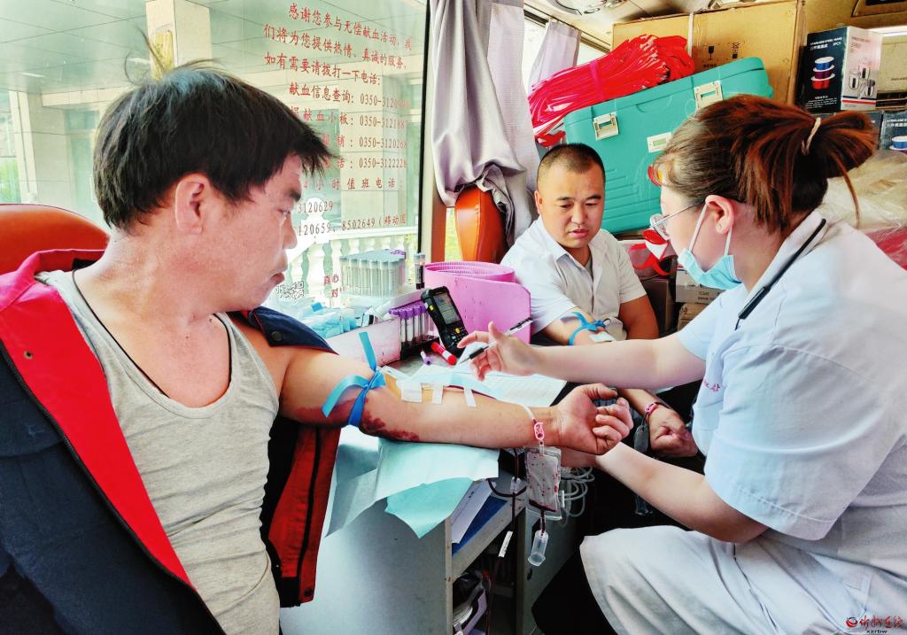 該公司干部職工用實(shí)際行動(dòng)弘揚(yáng)“奉獻(xiàn)、友愛(ài)、互助、進(jìn)步”的志愿精神,為保障人民群眾身體健康和生命安全貢獻(xiàn)了力量。已是第三次參加獻(xiàn)血的職工亢小杰表示:“能盡自己的微薄之力,無(wú)償獻(xiàn)血,為生命接力,這是件非常有意義的事情?!保▌?強(qiáng) 段麗丹 攝影報(bào)道)