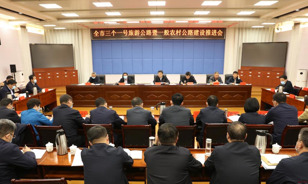 4月22日,全市三個(gè)一號(hào)旅游公路暨一般農(nóng)村公路建設(shè)推進(jìn)會(huì)召開(kāi),通報(bào)當(dāng)前進(jìn)展,細(xì)化目標(biāo)任務(wù),要求搶抓政策機(jī)遇期、施工黃金期、任務(wù)節(jié)點(diǎn)期,進(jìn)一步統(tǒng)一思想、提高認(rèn)識(shí)、補(bǔ)齊落下的步子,全力加快推進(jìn)全市交通基礎(chǔ)設(shè)施建設(shè)。市委副書(shū)記、市長(zhǎng)李建國(guó)出席會(huì)議并講話。市委常委、副市長(zhǎng)溫建軍主持會(huì)議并作具體安排。市政府秘書(shū)長(zhǎng)張艮生及各縣(市、區(qū))長(zhǎng)、市直相關(guān)部門主要負(fù)責(zé)同志參加。