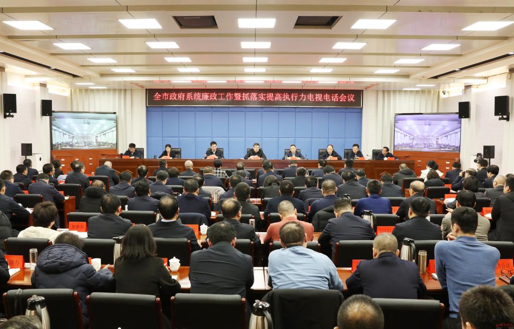 本報訊 (記者任逢春)2月22日,全市政府系統(tǒng)廉政工作暨抓落實提高執(zhí)行力會議召開,深入學習貫徹習近平總書記關于黨的自我革命的重要思想,全面貫徹黨中央國務院、省委省政府、省紀委和市委的系列會議安排,對縱深推進政府系統(tǒng)黨風廉政建設和反腐敗斗爭工作進行安排部署,號召全市政府系統(tǒng)振奮精神、擔當作為,全面提升重實干、強執(zhí)行、抓落實的實踐成效,不斷開創(chuàng)全市高質量發(fā)展、全方位轉型和現代化建設新局面。市委副書記、市長李建國出席會議并講話。市委常委、常務副市長趙新年主持會議。市委常委、市紀委書記、市監(jiān)委代主任王建江,副市長史紅波、賈玲香、王建峰、李碩,市政府秘書長張艮生出席。