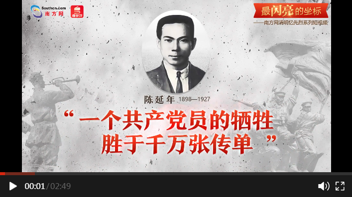 編者按:清明憶英烈,忠魂貫長空。4月1日至5日,南方網(wǎng)、粵學習客戶端策劃推出“最閃亮的坐標”系列短視頻,通過挖掘廣東革命烈士的光輝事跡,與大家一起緬懷英烈、學習英烈。今天推出第一篇《陳延年:一個共產(chǎn)黨員的犧牲勝于千萬張傳單》。