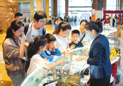 4月30日,運(yùn)城博物館里,“運(yùn)城禮物”非遺市集熱鬧開(kāi)市?!昂谀嗝苷Z(yǔ)”護(hù)膚套盒、關(guān)公銀像、《河?xùn)|十三邑 中華編年史》讀寫繪……極具代表性的非遺文創(chuàng)產(chǎn)品和13個(gè)縣(市、區(qū))的特色禮物一同精彩亮相。眼下,運(yùn)城博物館5個(gè)文創(chuàng)商店、3個(gè)網(wǎng)絡(luò)平臺(tái),已同步上線銷售385種文創(chuàng)產(chǎn)品。