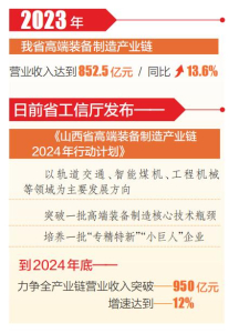 省工信廳日前發(fā)布《山西省高端裝備制造產(chǎn)業(yè)鏈2024年行動(dòng)計(jì)劃》,確立年度推進(jìn)目標(biāo):以軌道交通、智能煤機(jī)、工程機(jī)械等領(lǐng)域?yàn)橹饕l(fā)展方向,突破一批高端裝備制造核心技術(shù)瓶頸,培養(yǎng)一批“專精特新”“小巨人”企業(yè),提升全產(chǎn)業(yè)鏈科技創(chuàng)新能力,強(qiáng)化高端裝備制造供應(yīng)鏈穩(wěn)定性和配套能力。并提出,到2024年底,力爭全產(chǎn)業(yè)鏈營業(yè)收入突破950億元,增速達(dá)到12%。