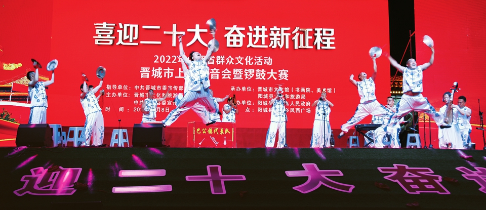 黨的二十大即將召開,三晉兒女歡欣鼓舞,充滿期待。晉城市上黨八音會在鑼鈸并舉、激越高昂的聲樂中,將黨的二十大召開的喜訊,傳遍澤州大地;運(yùn)城市旗袍展演秀出紅紅火火的幸福日子及喜慶之情;臨汾市鑼鼓大賽奏響時代最強(qiáng)音,禮贊新時代……三晉大地載歌載舞,一系列主題文化活動都表達(dá)著對黨的二十大的翹首企盼,及對祖國更加繁榮昌盛的祝福之情。