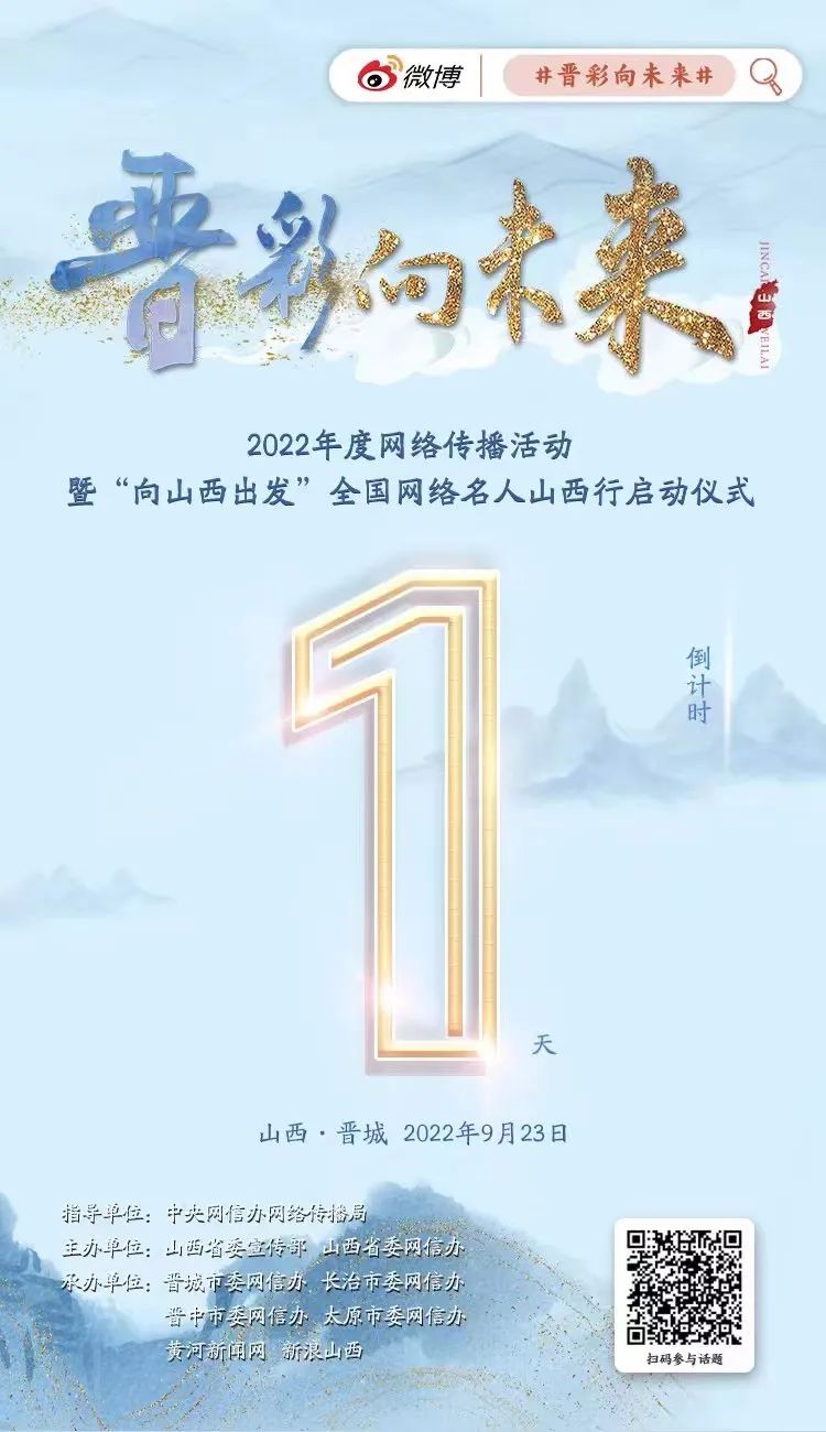 “晉彩向未來”年度網(wǎng)絡(luò)傳播活動(dòng),是“非凡十年?奮‘晉’未來”系列網(wǎng)絡(luò)主題宣傳活動(dòng)之一。活動(dòng)共分為短視頻征集活動(dòng)、全國網(wǎng)絡(luò)名人山西行、優(yōu)秀作品展播三階段推進(jìn),目前短視頻征集已在線上預(yù)熱開啟?!皶x彩向未來”2022年度網(wǎng)絡(luò)傳播活動(dòng)暨“向山西出發(fā)”全國網(wǎng)絡(luò)名人山西行活動(dòng)將于9月23日正式啟動(dòng)。
