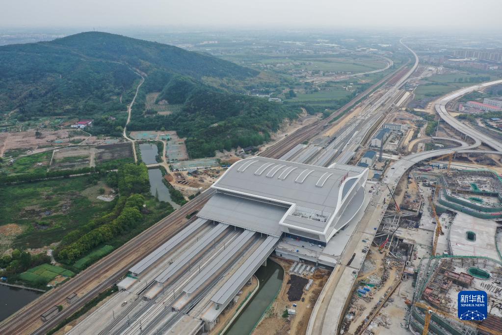 這是滬寧沿江高速鐵路江陰站站房(4月28日攝,無人機照片)。新華社記者 季春鵬 攝