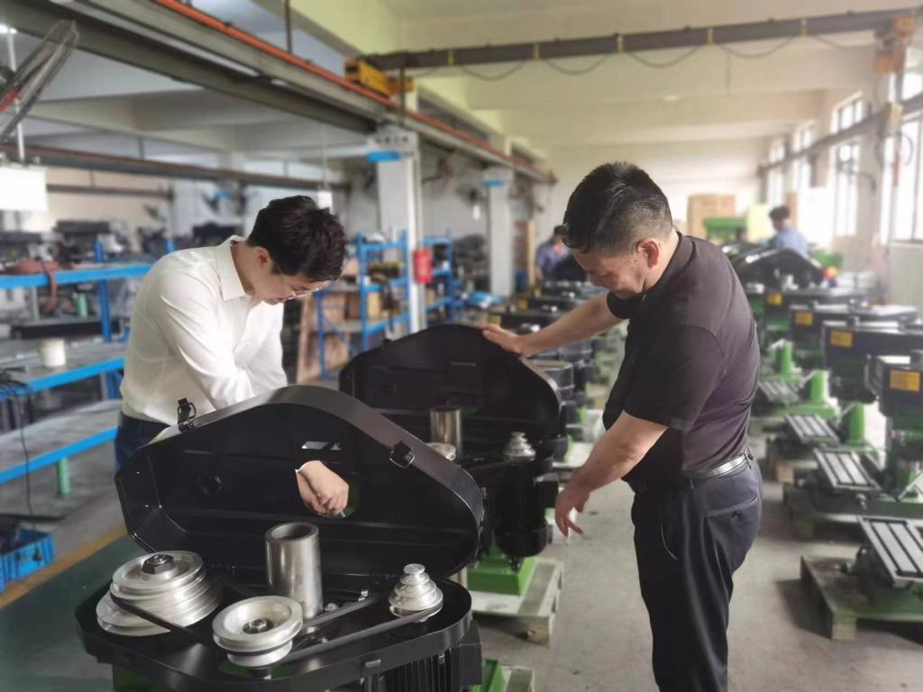 受疫情影響,2021年外貿企業(yè)訂單量隨著海運放緩、海外需求下降而減少。生產閑下來了,但繆繼云和兒子繆帥濤對產品改良的思考沒有停止。在不斷調試臺鉆時,他們發(fā)現(xiàn),調速必須動手換皮帶,“為什么不能像調收音機一樣調動速率呢?”兩人一商量,立即開始畫草圖,接著去銀行貸款投入模具開發(fā)。