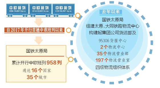 “自2017年開行首趟中歐班列以來,國(guó)鐵太原局累計(jì)開行的中歐班列已有958列,通達(dá)16個(gè)國(guó)家、35個(gè)城市。”國(guó)鐵太原局貨運(yùn)部科長(zhǎng)田源介紹,“中歐班列已經(jīng)成為不沿海、不沿邊的山西省對(duì)外開放重要平臺(tái)。”