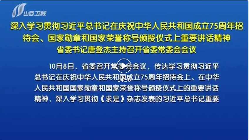 會(huì)議指出,習(xí)近平總書記在慶祝中華人民共和國成立75周年招待會(huì)上的重要講話,總結(jié)回顧75年來中國共產(chǎn)黨團(tuán)結(jié)帶領(lǐng)全國各族人民不懈奮斗取得的偉大成就,對(duì)推進(jìn)中國式現(xiàn)代化作出重大部署、提出明確要求,為把這一前無古人的偉大事業(yè)不斷推向前進(jìn)提供了根本遵循。走好新的征程,要始終堅(jiān)持黨的領(lǐng)導(dǎo),深刻領(lǐng)悟“兩個(gè)確立”的決定性意義,增強(qiáng)“四個(gè)意識(shí)”、堅(jiān)定“四個(gè)自信”、做到“兩個(gè)維護(hù)”,持之以恒推進(jìn)全面從嚴(yán)治黨,確保黨中央各項(xiàng)決策部署在山西不折不扣落到實(shí)處。要始終堅(jiān)持中國特色社會(huì)主義道路,堅(jiān)定歷史自信,增強(qiáng)歷史主動(dòng),高舉改革開放旗幟,堅(jiān)定扛牢使命任務(wù),在推動(dòng)高質(zhì)量發(fā)展、深化全方位轉(zhuǎn)型上不斷取得新成效。要始終堅(jiān)持以人民為中心,牢記黨的根本宗旨和國家性質(zhì),樹立和踐行正確政績觀,用心用情用力辦好民生實(shí)事,努力讓全省人民在共同奮斗中共享改革發(fā)展成果。要始終胸懷兩個(gè)大局、心懷“國之大者”,自覺把山西工作放到黨和國家工作大局中來定位、謀劃和推進(jìn),為以中國式現(xiàn)代化全面推進(jìn)強(qiáng)國建設(shè)、民族復(fù)興偉業(yè)作出山西貢獻(xiàn)。