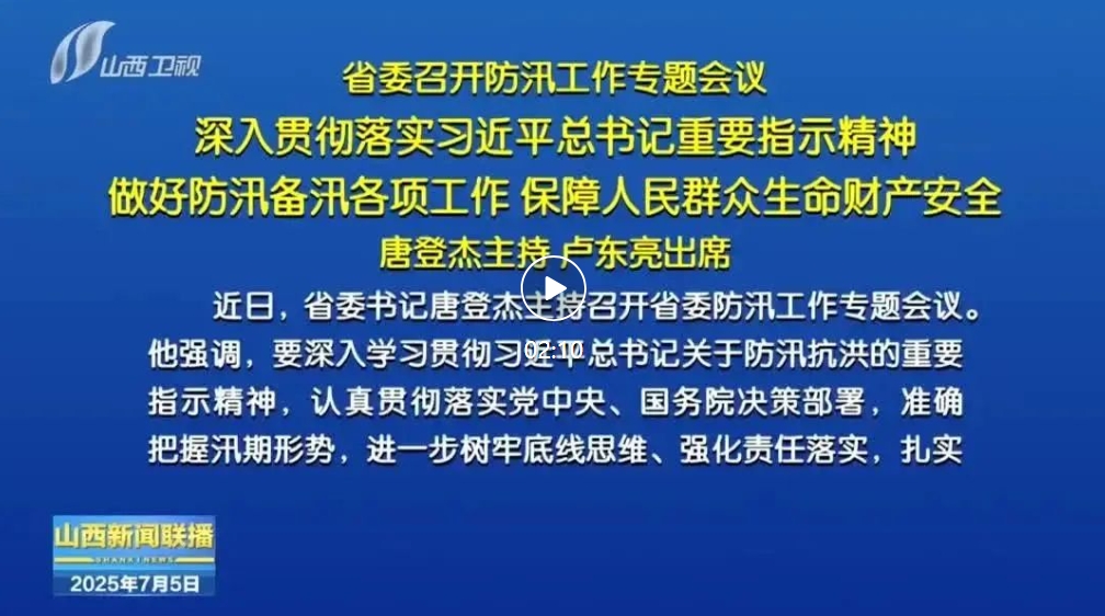 近日,省委書(shū)記唐登杰主持召開(kāi)省委防汛工作專(zhuān)題會(huì)議。他強(qiáng)調(diào),要深入學(xué)習(xí)貫徹習(xí)近平總書(shū)記關(guān)于防汛抗洪的重要指示精神,認(rèn)真貫徹落實(shí)黨中央、國(guó)務(wù)院決策部署,準(zhǔn)確把握汛期形勢(shì),進(jìn)一步樹(shù)牢底線思維、強(qiáng)化責(zé)任落實(shí),扎實(shí)做好防汛備汛各項(xiàng)工作,堅(jiān)決打好防汛救災(zāi)主動(dòng)仗,全力保障人民群眾生命財(cái)產(chǎn)安全。省委副書(shū)記、省長(zhǎng)盧東亮,省領(lǐng)導(dǎo)李金科、楊勤榮、張韶華出席。