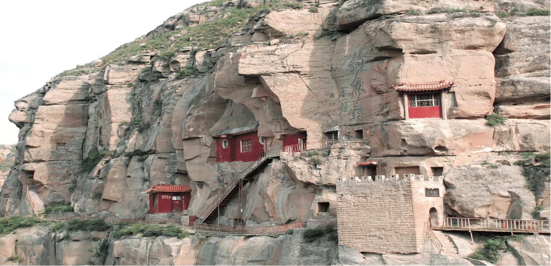 故城石窟位于保德縣楊家灣鎮(zhèn)故城村西1500米、黃河?xùn)|岸石崖上。清順治二年(1645),由陳奇瑜構(gòu)筑,歷時(shí)三年建成,建有呂仙祠等建筑。故城石窟坐東向西,占地面積約600平方米。向南石砌的古堡式門(mén)洞,門(mén)洞上方匾書(shū)“釣魚(yú)臺(tái)”,頂部砌有女兒墻垛口。山壁上有大小不等的10孔人工開(kāi)鑿的石窟。 據(jù)《保德縣志》記載:“釣魚(yú)臺(tái)鑿于山角壁,構(gòu)體懸空,門(mén)額鐫刻‘天險(xiǎn)雄辟’四字,門(mén)上鑿有石洞,與石洞相接的是呂仙祠。下洞三五步,有屋六七間,旁有一小門(mén),小門(mén)即為院,構(gòu)以三楹,題門(mén)楣曰‘釣魚(yú)臺(tái)’。從東面下,按以石階,北則級(jí)盡為斷橋,以木障之,旁鑿小洞,貯粟藏帛。與橋相對(duì)者為第二關(guān),入關(guān)仰視,攀石入洞,長(zhǎng)4丈,寬3丈,有閣外出。西穿1洞,有廚房2間,旁鑿1井,引吊用水。” 釣魚(yú)臺(tái)為明代五省總督陳奇瑜在招撫李自成義軍失誤而被撤職查辦后,在黃河岸邊修建。2007年6月,忻州市人民政府公布故城石窟為市級(jí)文物保護(hù)單位。 (責(zé)任編輯:梁艷) |