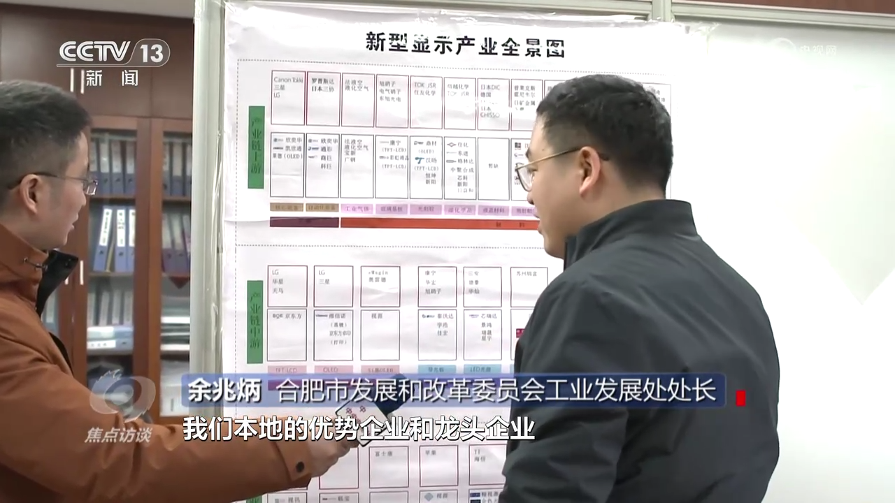 合肥市發(fā)展和改革委員會工業(yè)發(fā)展處處長余兆炳:“新型顯示產(chǎn)業(yè)全景圖上面顯示了合肥市發(fā)展新型顯示的產(chǎn)業(yè)鏈的上游、中游、下游本地的優(yōu)勢企業(yè)和龍頭企業(yè),有這個全景圖,我們對標作戰(zhàn)、掛圖作戰(zhàn)非??梢暬鲬?zhàn)?!?/p>