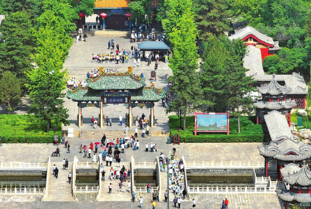 5月16日,綠蔭密布的晉祠公園,游人熙熙攘攘。本報(bào)記者劉通攝