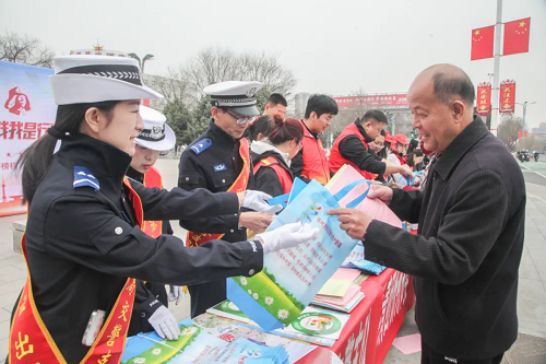 活動(dòng)現(xiàn)場(chǎng),交警支隊(duì)宣傳科、古城大隊(duì)七一崗的交警們身披綬帶,與各單位的志愿者們一起設(shè)立宣傳臺(tái),擺放交通事故警示教育宣傳展板,為過(guò)往群眾提供交管業(yè)務(wù)咨詢(xún)、開(kāi)展電動(dòng)自行車(chē)上牌上戶(hù)、騎行電動(dòng)車(chē)要佩戴安全頭盔、駕車(chē)拒絕酒駕等普法宣傳,通過(guò)發(fā)放交通安全宣傳資料,向群眾講解安全過(guò)馬路、遠(yuǎn)離貨車(chē)盲區(qū)、“一盔一帶”等交通安全常識(shí),倡導(dǎo)群眾自覺(jué)抵制交通陋習(xí),讓“走文明路、行文明車(chē)、做文明人”成為自覺(jué)和安全出行的前提。