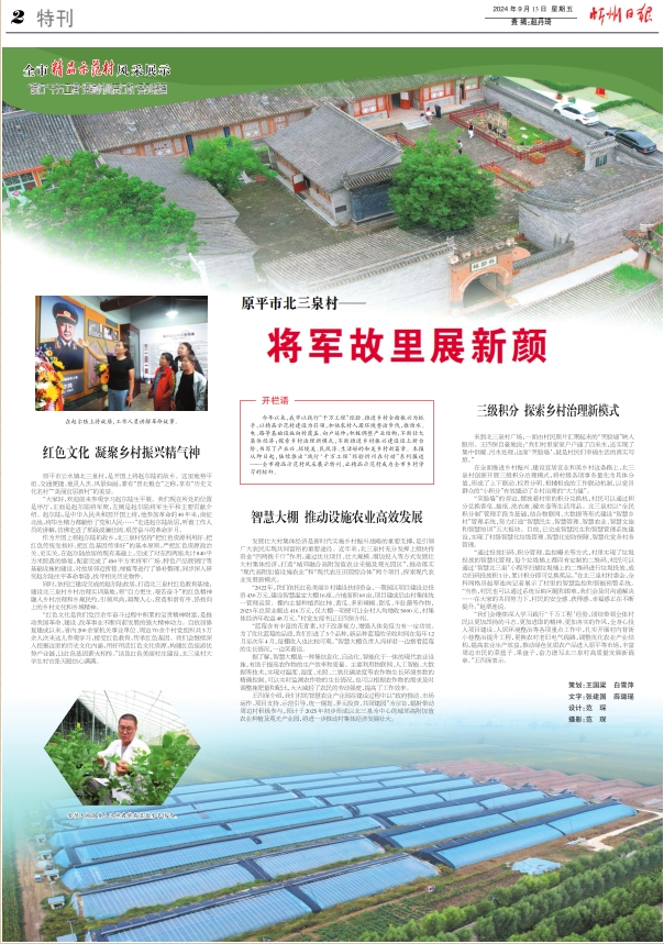 今年以來,我市以踐行“千萬工程”經(jīng)驗、推進鄉(xiāng)村全面振興為抓手,以精品示范村建設為引領,加快農村人居環(huán)境整治步伐,推動水、電、路等基礎設施向村覆蓋、向戶延伸;積極調整產(chǎn)業(yè)結構,不斷壯大集體經(jīng)濟;探索鄉(xiāng)村治理新模式,不斷推進鄉(xiāng)村振興建設邁上新臺階,書寫了產(chǎn)業(yè)興、環(huán)境美、民風淳、生活好的和美鄉(xiāng)村新篇章。本報從即日起,陸續(xù)推出“踐行‘千萬工程’經(jīng)驗忻州在行動”系列報道——全市精品示范村風采展示特刊,讓精品示范村成為全市鄉(xiāng)村學習的標桿。