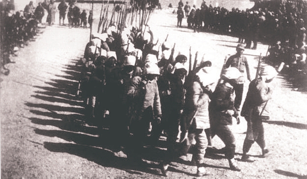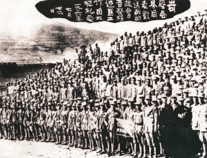 圖5 從1937年9月成立到1938年,戰(zhàn)動(dòng)總會(huì)先后在第二戰(zhàn)區(qū)內(nèi)組建了17個(gè)游擊支隊(duì),另有山西工人武裝自衛(wèi)旅(簡(jiǎn)稱(chēng)工衛(wèi)旅)、察綏游擊軍、1個(gè)政治保衛(wèi)隊(duì)、2個(gè)地方游擊隊(duì),還有戰(zhàn)區(qū)各縣游擊隊(duì)、自衛(wèi)隊(duì)等。圖為1942年10月工衛(wèi)旅在興縣舉行成立5周年紀(jì)念大會(huì)后,司令部與政治部全體干部合影。